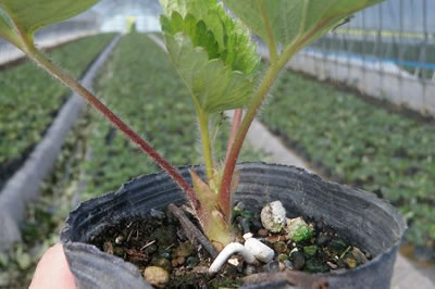 いちごづくりは親株の管理、苗取り、苗さし、その後の管理(日照、病害虫や雑草など)、植え付け、収穫…と、一年以上ずっと手がかかります。